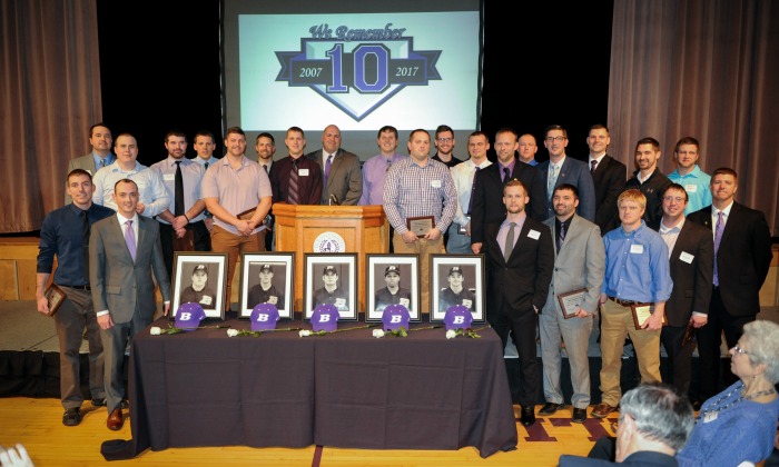 Photo: Members of the 2007 Bluffton (Ohio) University baseball team were inducted into the Athletics Hall of Fame this year. The 2007 team experienced a bus crash on March 2, 2007, that claimed the lives of five team members. Photo by Jamie Nygaard.