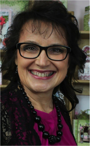 In 1997, we built a new house on our 80-­acre farm. By this time, I had accumulated a shoebox full of LindaBontrager2stamps from mail­ order sources I found. Our family now had more space in our new home and I asked my husband if we could use a small corner of our dining room and get stamping products for resale. I told him, “You know, just a few items for some friends and family. Maybe a few stamps, some ink, embossing powder, and card stock.”