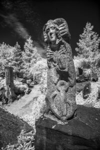 AW: As I look through your website gallery photos, I notice a lot of light and shadow in your work. I see this in your photography of Orvidas’ sculptures, as well as in photos of ghettos and death camps. This is highlighted, I feel, in your infrared photos. Could you say more about light and shadow in your work?