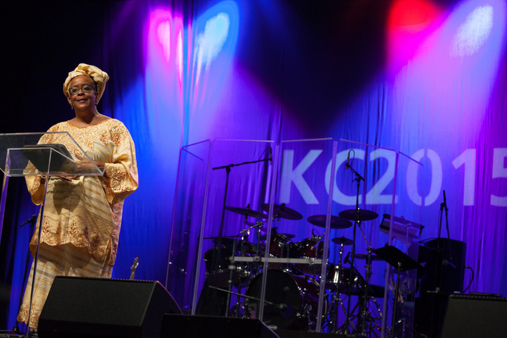 “He says to her, ‘You are healed of your troubles,’ ” she said to the 4,557 attendees, including 2,373 youth. “He didn’t go and say, ‘You know, if you accept me as your Lord Jesus Christ . . .’ He didn’t say, ‘You know, you are a woman and I am a man and this kingdom is only for . . .’