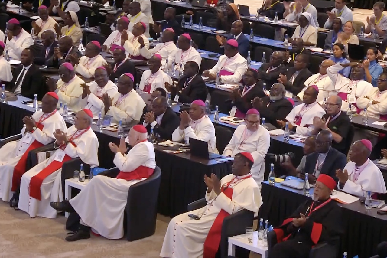 Attendees listen during the 20th Plenary Assembly of the Symposium of Episcopal Conferences of Africa and Madagascar in Kigali, Rwanda. — Video screen grab
