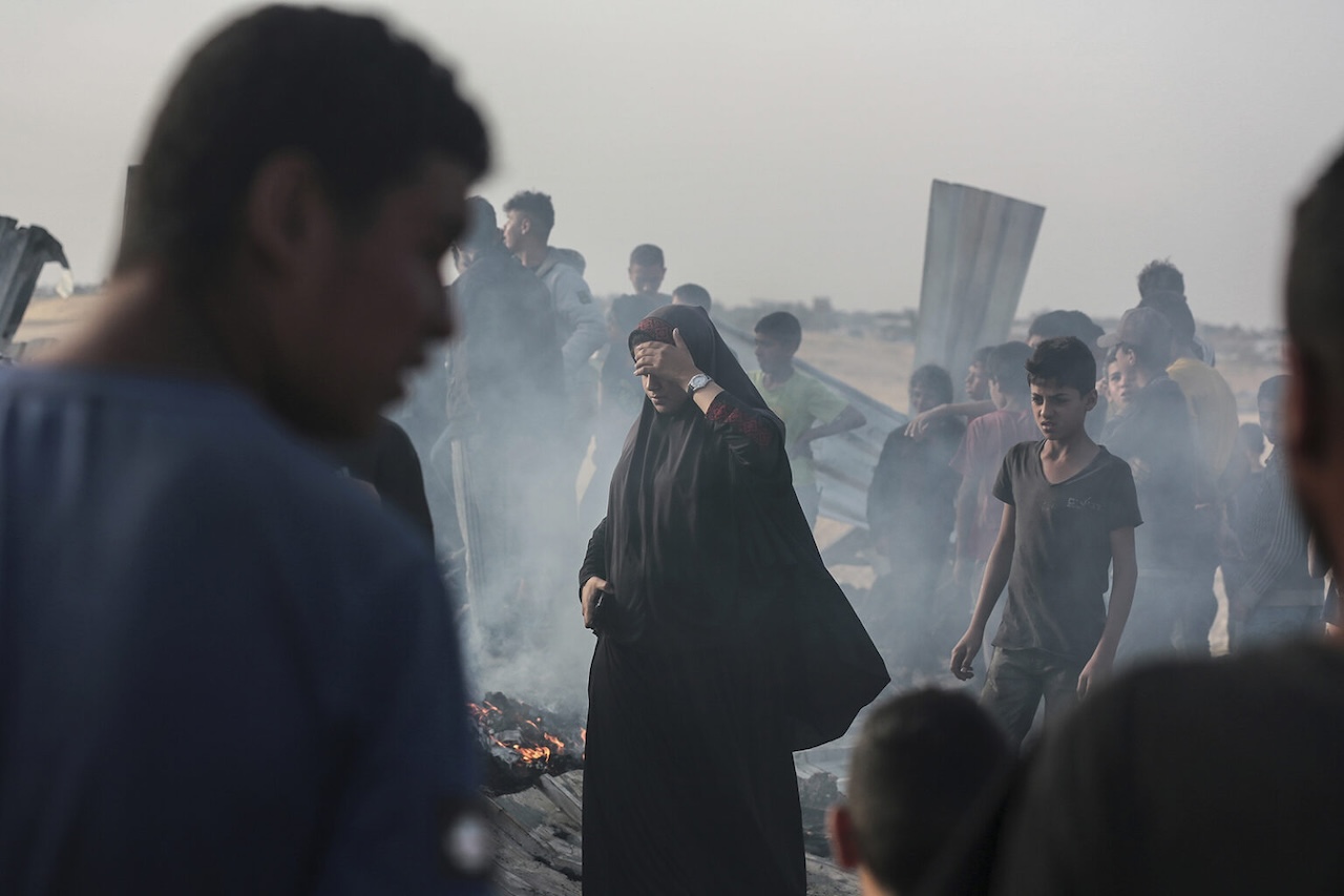 Palestinians look at the destruction after an Israeli strike where displaced people were staying in Rafah, Gaza Strip, on May 27, 2024. Palestinian health workers said Israeli airstrikes killed at least 35 people in the area. — AP Photo/Jehad Alshrafi