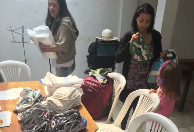 Since 2017, Delicia–with the help of church members, refugees, volunteers and her husband–has made around 600 diapers kits.