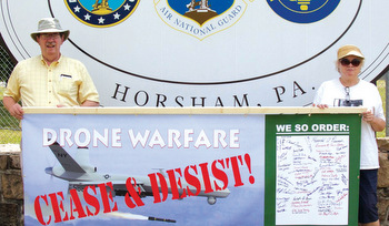 “Just because Mennonite [Church USA] delegates affirmed the Faithful Witness resolution last summer doesn’t mean we have completed our prophetic responsibility in our own generation,” said Preston Bush of the planning committee. “The monthly witness at the Horsham Drone Command Center is our opportunity to really be who we say we are.”