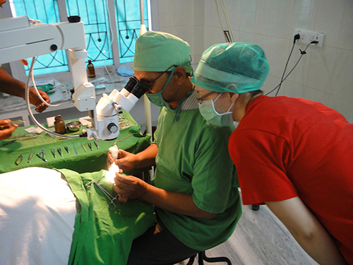 Hesston College student Grace Schmidt watches a cataract surgery at Menno Clinic in India. Hesston College photo