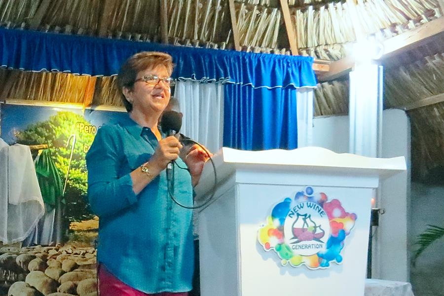 Amanda Falla comparte su testimonio en una iglesia de Sahagún, Colombia.
