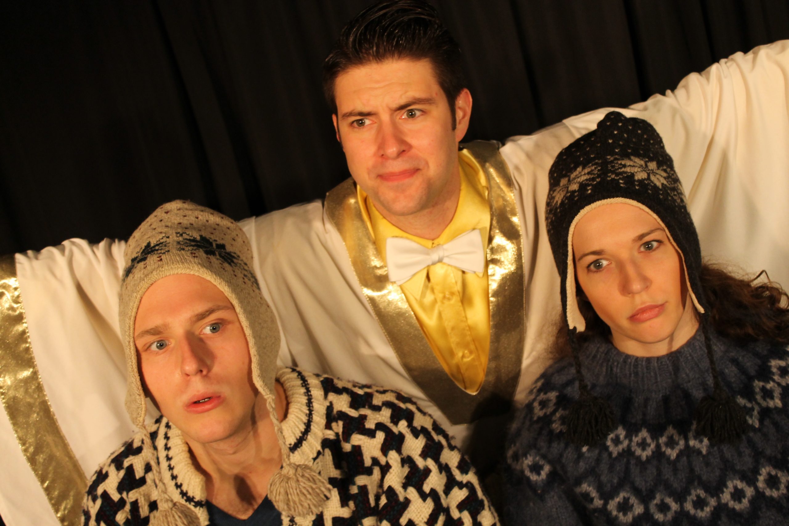 Photo: From left: Mitchell Cole, Braydon Hoover, and Lauren Zehr will perform in a special one-night showing of “DoveTale” at Eastern Mennonite University. The performance, celebrating the 20th anniversary of its widely acclaimed debut by alumni Ted Swartz and Lee Eshleman, benefits the University Fund. (Photos courtesy of Ted and Co.)