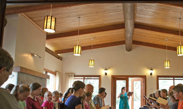 EMM worker Debbi DiGennaro leads a monthly hymn sing at the Amani Gardens Inn in Nairobi, Kenya. Photo by Travis Tice.