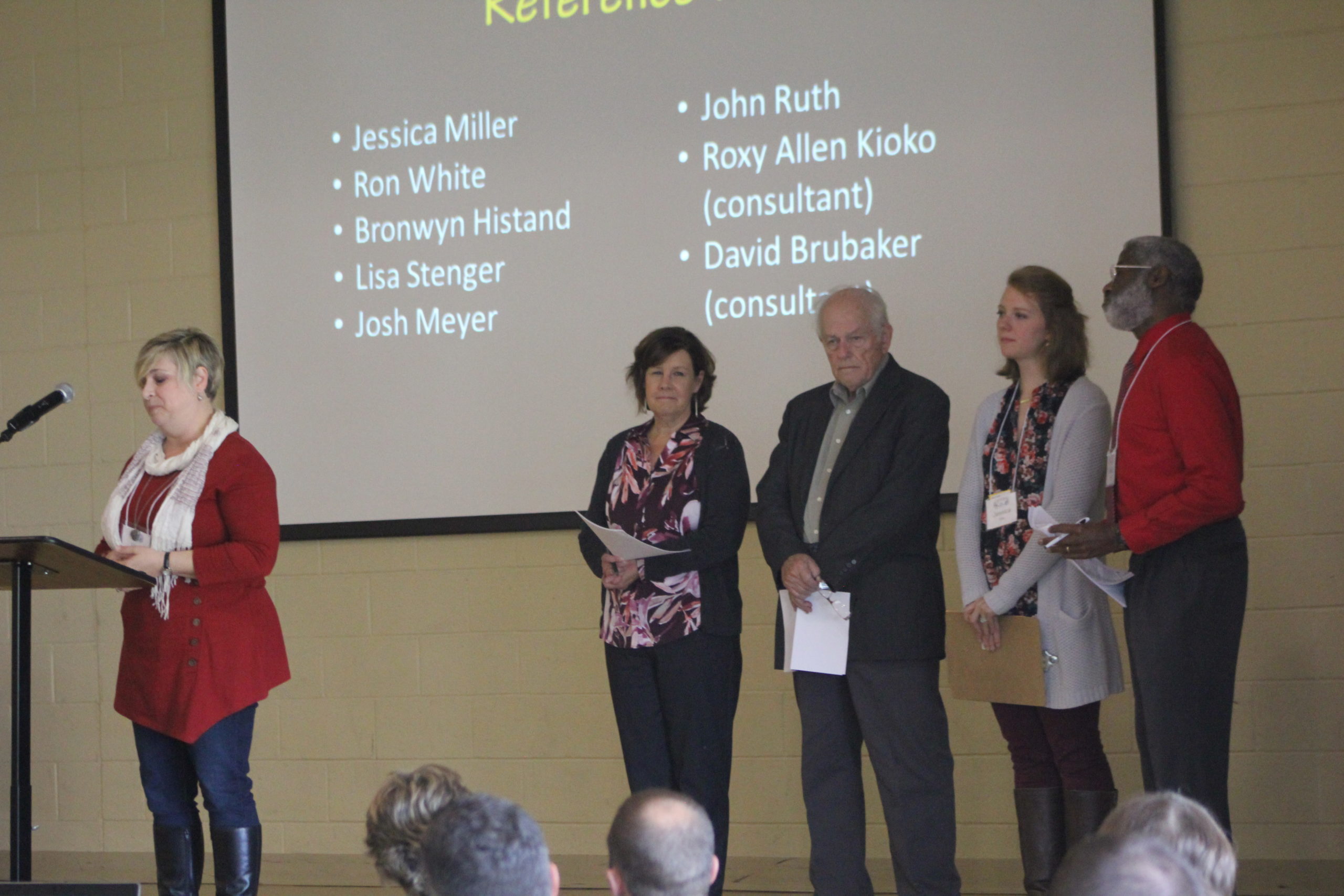 Photo: Members of the Exploring Reconciliation Reference Team, Left to Right: Lisa Stenger, Bronwyn Histand, John Ruth, Jessica Miller, and Ron White. Photo provided.