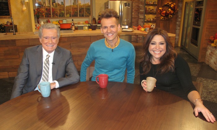 Photo: Kaleb Wyse with Rachael Ray and Regis Philbin, who offered tips on how to be a good talk show host. (Courtesy photo)