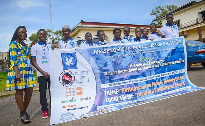 MOP-Liberia, led by Myers, celebrated International Peace Day with a week of activities in Monrovia, which included media engagement, interfaith interactions, community outreach into underprivileged communities, and a main event for the official launch of the Amman Declaration on Youth, Peace and Security in Liberia on the University of Liberia campus.