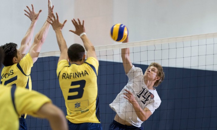 Photo: Hunter Taylor plays in the Pan Am qualifier against Brazil with the men’s national deaf volleyball team. He is a rising junior at Eastern Mennonite University. (Photo by Tara Lanning)