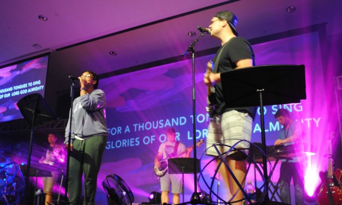 Photo: Jhia Chalique Horn and Calvin Whetstone lead worship at ReGen 2017. Photo provided.