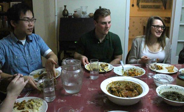 Mike Medley, chair of the Language and Literature Department, opened Saturday evening’s meal with a smile and a Punjabi song to bless the spread of Pakistani dishes before him. He and his wife, Deb, provided curried foods including lentils, chicken, potato with cauliflower, and mustard greens. In addition, they served roti, a flour-based flatbread, achaar, mixed, pickled vegetables, and raita, a tart yogurt condiment with mint and cumin to cool down the spicy Thai dragon peppers.