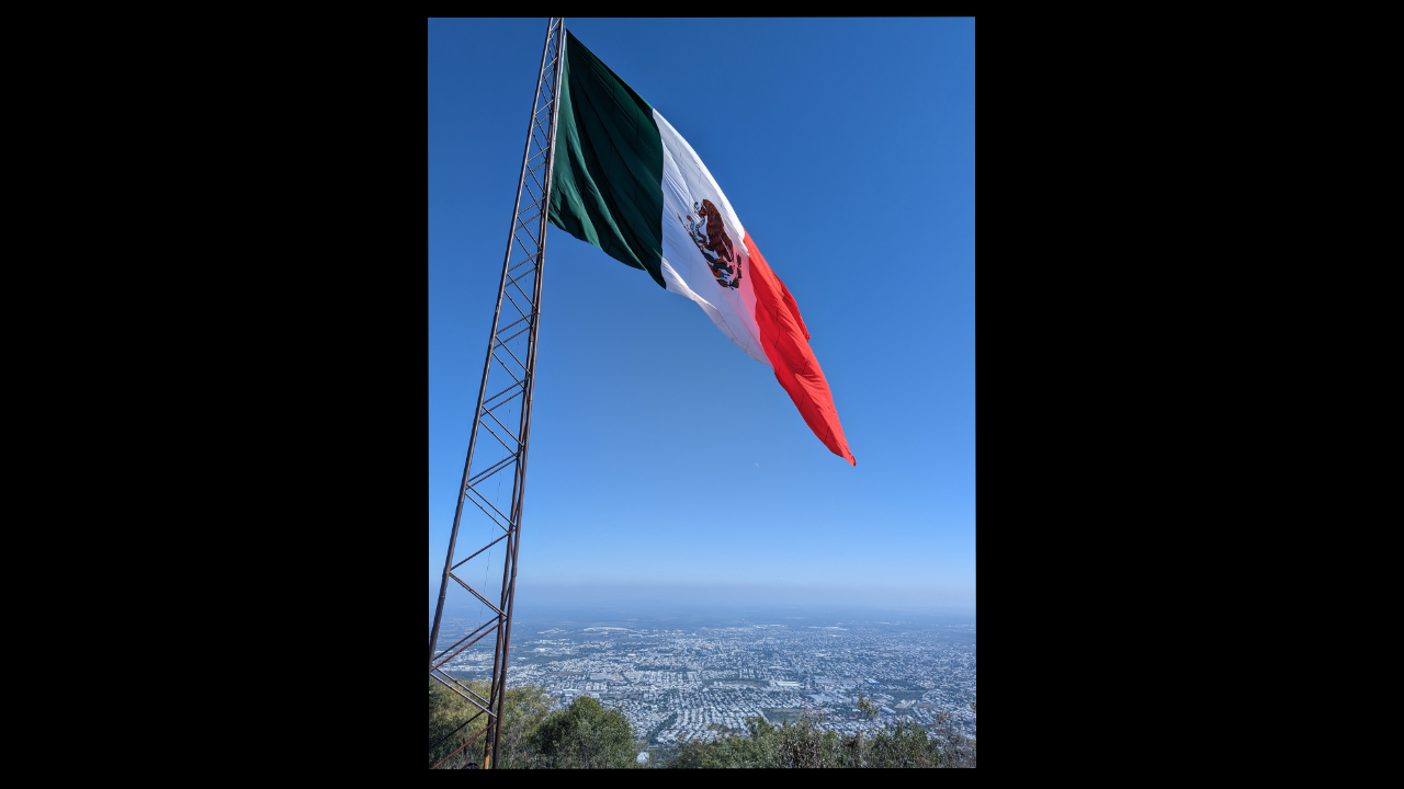 This Mexican flag is located at the top of a hill outside of Ciudad Victoria, Tamaulipas. — Andrea De Avila