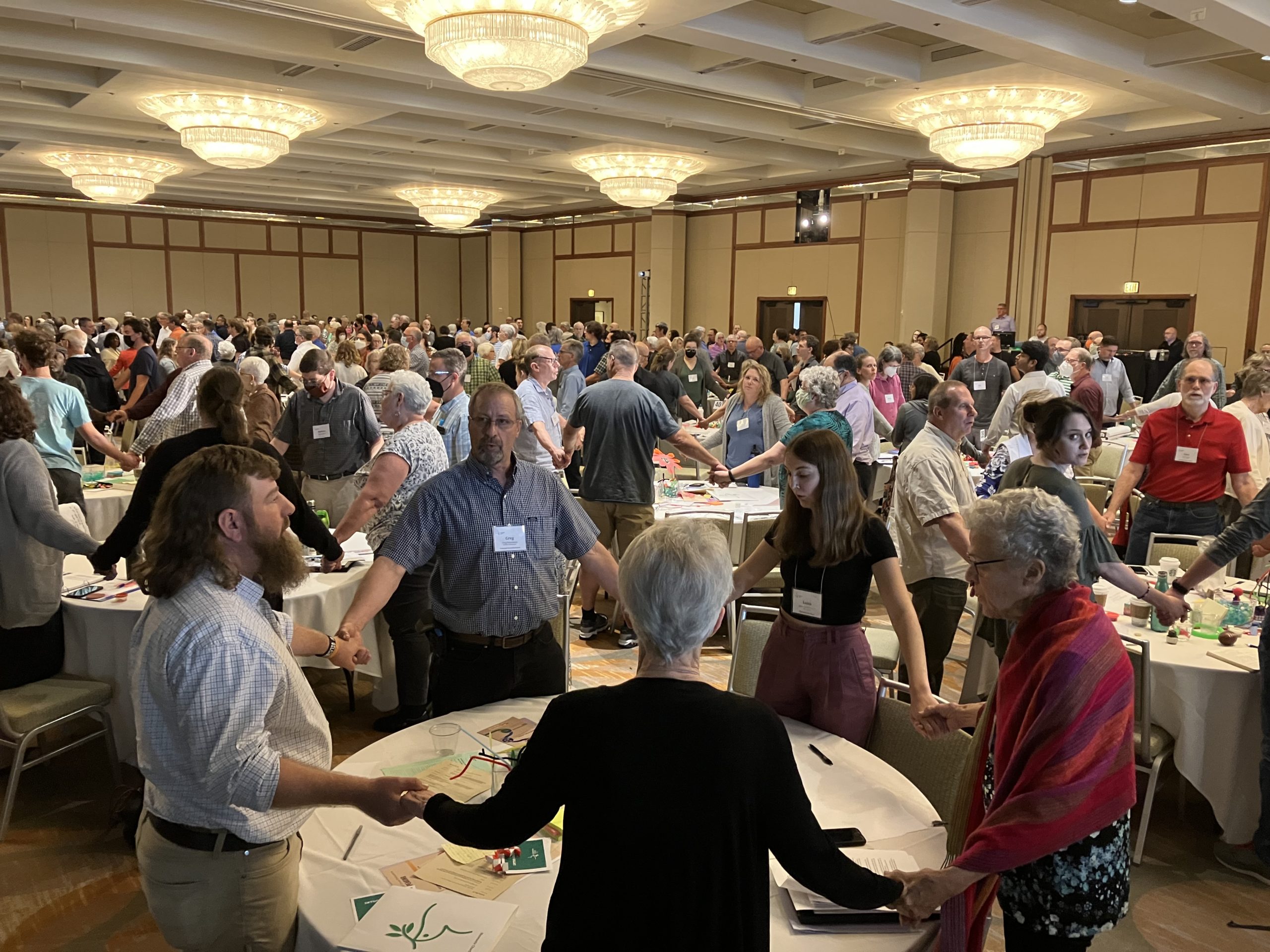 An accessibility resolution was passed that can be read here. In summary, as a denomination, we commit to being as accessible as possible. People speaking during our open mic time reminded each of us the various types of disabilities people face and how important it is for us to be aware. Some commonly used accessibility modifications include ramps, large print materials, and clear, strong audio systems. Some disabilities that are sometimes not thought about are (but not limited to) chemical sensitivities, those who are sensitive to sounds and other potentially triggering stimuli, and folks who aren’t able to read. We learned alternate ways to “clap” and show appreciation, the benefit of using pictures and illustrations in our worship services, and being mindful of what scents we might wear to our church functions. Hearing these points was a learning opportunity for me and I hope it was for many others.
