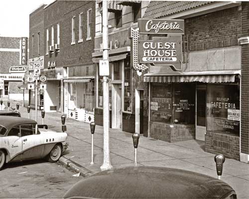 When it opened as the Guest House and Cafeteria, the restaurant was the first in Newton—and one of only three in the state—to operate as self-service. (There was one in Wichita that had sown the idea for the Guest House.) It was likely also among the first to include a salad bar, offering a dozen or more choices of cold salads, pickles and relishes.