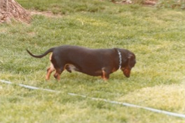 Later, Pastor Hauder exclaimed over our fence that he got a phone call from the manager Lucky 13 Pizza inquiring if he owned a small Dachshund.