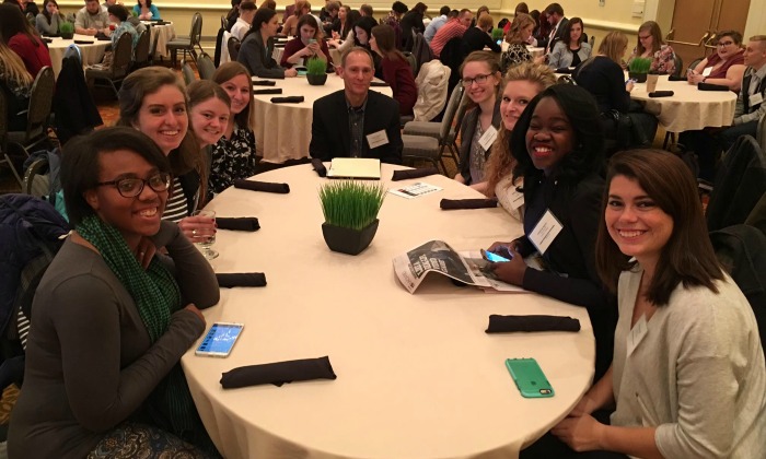 Photo: Goshen (Indiana) College communication and English students at the Indiana Collegiate Press Association awards on April 9, 2016 in Indianapolis. (Photo courtesy of the Indiana Collegiate Press Association)