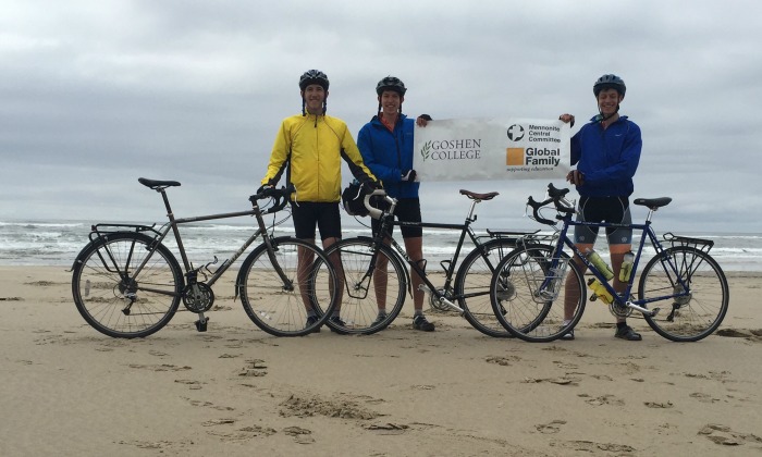 Three Goshen (Ind.) College graduates are biking 4,000 miles across the country with a goal in mind: to raise $5,000 for Mennonite Central Committee’s Global Family Program.
