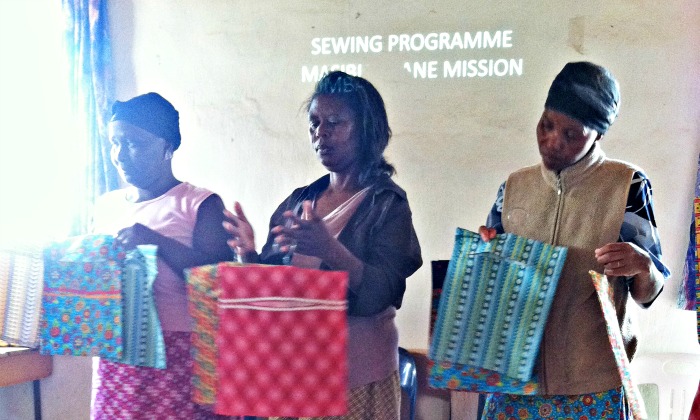 From left to right: Zondiwe Kunene, Jabulisile Dlamini, Thondiwe Mpinga display their recent sewing projects that they will soon sell as part of the income generation program. Photo by Breanna Koehn.