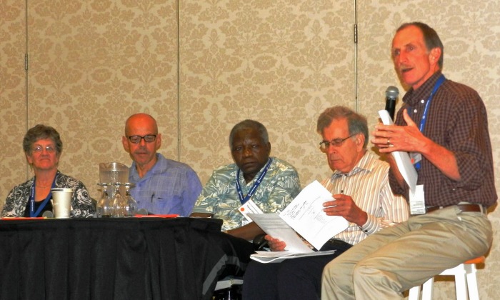 Photo: A panel at the MWC Health Care Leaders Summit, 2015. Left to Right: Pakisa Tshimika (D.R. Congo), Raymond Martin (USA) and Rick Stiffney (USA). Photo by Larry Guengerich.