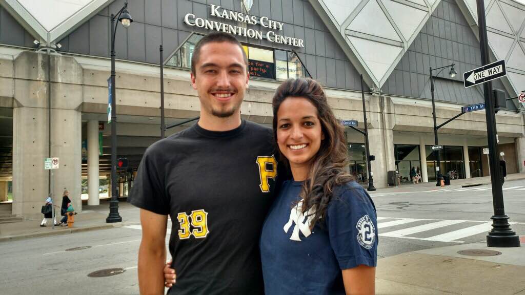 Photo: Ryan and Sarah Gerber in front of the Kansas City Convention Center. Photo by Rebecca Helmuth.
