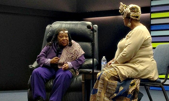 Photo: Keynote speaker Ruby Sales (left) speaks with Michelle Armster, Executive Director of Mennonite Central Committee Central States, during Hope for the Future at Calvary Community Church in Hampton, Virginia. Photo by Sue Park-Hur.
