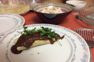 My host mother gladly helped me cook Mole Coloradito Enchilada, one of my favorite dishes that my mother and grandmother made when I was a child. It was a good thing she was willing to help, because preparation took almost 3 hours!