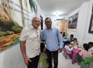 Visitamos la fundación Descubre tu Propósito, donde Marco fue retado a aprender a tocar la guacharaca y la batería junto a los niños, recibiendo con humor lo que él mismo llamó “vivir la experiencia”. En dos ocasiones participamos de los cultos dominicales, y en el segundo servicio Marco predicó sobre las diferentes maneras en que Jesús llamó a sus discípulos. Sus palabras resonaron entre las familias presentes, muchas de ellas enfrentando dificultades, pero aferradas a la esperanza que la iglesia les ofrece.