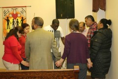 Photo: Members of Iglesia Menonita Hispana gather to pray for Mennonite Church USA and the future of IMH during their special assembly Nov. 20-21 in New Holland, Pa. (Photo by Ulises Arenas-Goossen).