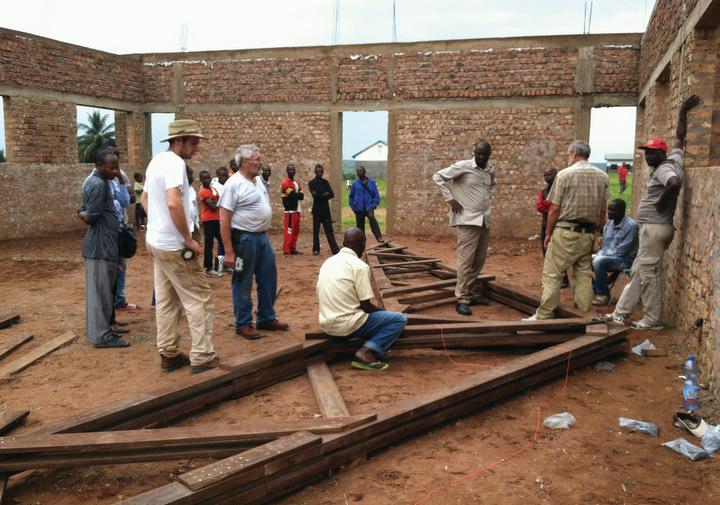 Due to a delayed plane and an all-day rain, the North Americans lost two work days and had to leave Tshikapa without putting the final rafter into place. Several weeks after their departure, church administrators gathered for a national conference and made the installation of the remaining rafter part of their agenda. The only remaining task before completion of the Kanzala church building is to put on the tin roof.