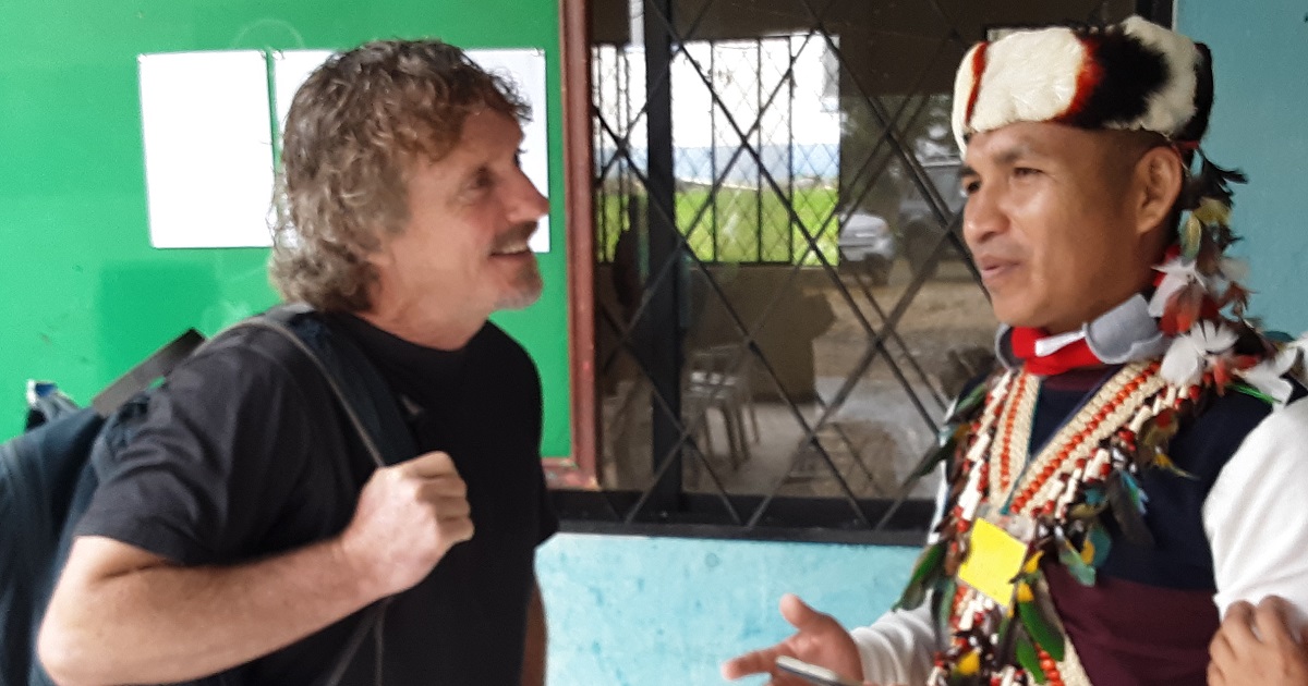 Photo: Clever Mashiant, right, of the Shuar Indigenous group in the Ecuadorian Amazon reflects with Jerrell Ross Richer on following Christ in ways that are authentic in a multicultural context. Photo by Jane Ross Richer.