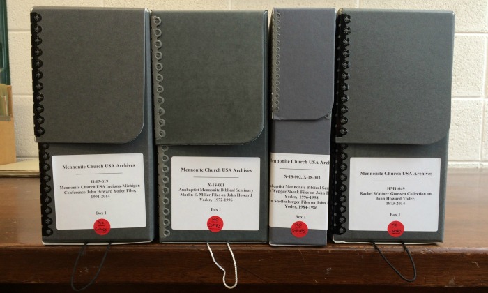 One of the boxes, “Sexual Harassment Charges and Conference Discipline,” is restricted from public use by Yoder’s family until 2047. Yoder’s family gave this box to the Archives after Yoder’s death in 1997.