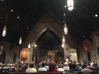 Those entering the service received ribbons or pieces of twine. Toward the end of the service, Yoder talked about a tradition of tying knots to represent troubles in our life, then untying them to represent moments of freedom. She invited people to bring their ribbons or pieces of twine to the front and leave them at the altar.