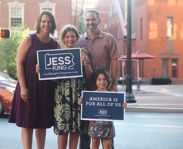 Photo: Jess King, left, her husband, Chad Martin, and their two daughters. Photo provided by Jess King for Congress.
