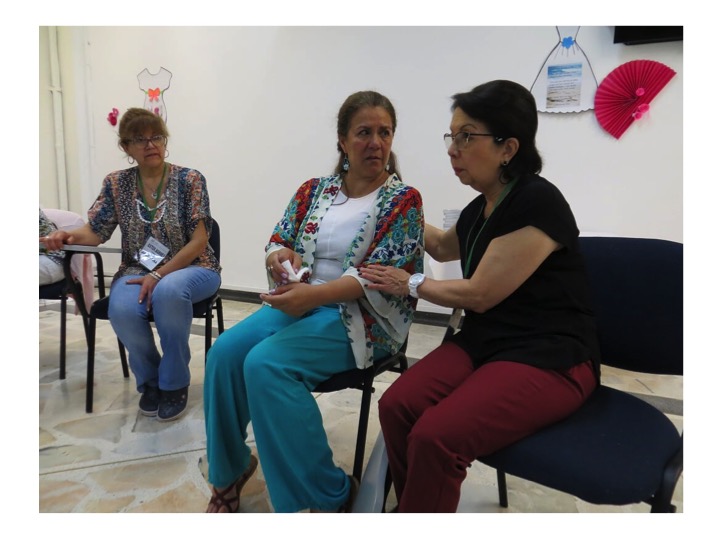 Las mujeres estaban especialmente preparadas para este tema de límites saludables porque el acoso y abuso sexual fueron con frecuencia situaciones que ellas identificaron en los talleres anteriores de Cuidándonos entre Mujeres. Este taller fue facilitado por Elizabeth Soto y Alix Lozano. Soto recibió capacitación del Faith Trust Institute y Lozano tiene experiencia trabajando en límites saludables con el liderazgo de la Iglesia Cristiana Menonita de Colombia (IMCOL).