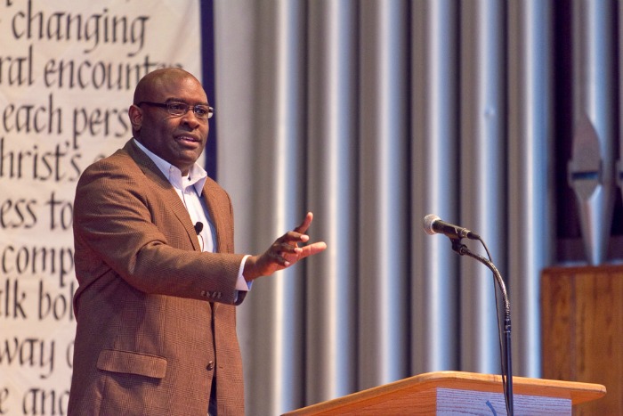 Photo: Leonard Dow, a 1987 graduate with a degree in business administration, is Eastern Mennonite University’s Distinguished Service honoree for 2017. Dow, who pastored Philadelphia’s Oxford Circle Mennonite Church beginning in 1999, now works for Everence Financial. He has also served as a bishop of the Philadelphia District of Lancaster Mennonite Conference, vice chair of Mennonite Central Committee U.S., and board chair of Kingdom Builders Anabaptist Network of Greater Philadelphia. (Photo by Michael Sheeler)