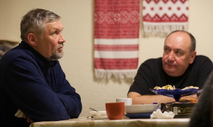 Photo: Fedir, left, is pastor of a Light of the Gospel church in government controlled territory in eastern Ukraine. Pavel is bishop of the Light of the Gospel group of Baptist churches and lives on the other side of the conflict zone in a self-declared independent republic. Last names are withheld for security reasons. MCC photo/Colin Vandenberg