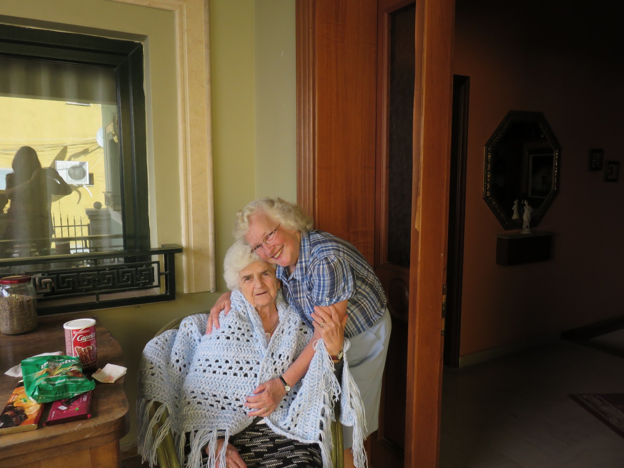 Photo: Mary Boll (right), a 2014 short-term Eastern Mennonite Missions (EMM) worker at a milk processing plant in Albania, hugs a local friend in the Albanian city of Korce. Older adults like Boll will find short-term international service opportunities geared towards seniors and retirees at ASOPortal.org, a website created through a partnership between EMM and Mennonite Central Committee. Photo provided by Nevin and Mary Boll.