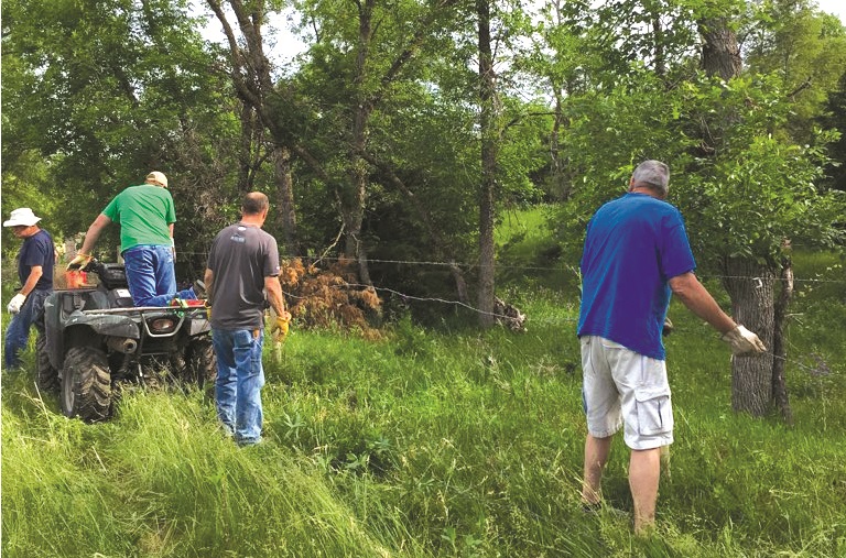 Photo: A Mennonite Disaster Service volunteer team from Milford and Wood River, Nebraska, rebuilds fencing June 6 near Spencer, Nebraska, after Boyd County experienced heavy flooding in March 2019. Photo by Mennonite Disaster Service