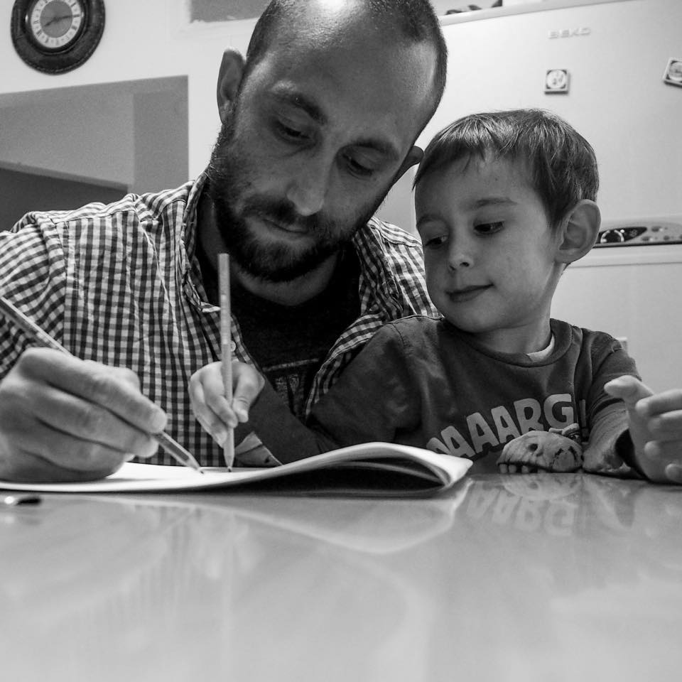 Father and son Bilal (father) and Mohamed Hathaleen. This was the second time in Mohamed’s young life that his home was demolished. Photo by Cody O’Rourke.