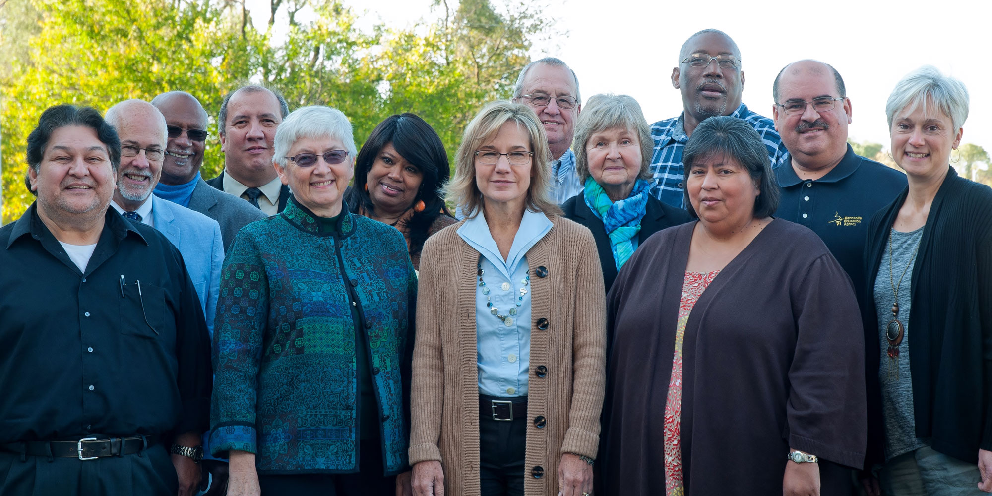 Photo: The Mennonite Education Agency board of directors (from l to r): Ramiro Hernandez, Tom Stuckey, Roy Williams, Carlos Romero (Executive Director), Marlene Kropf, Addie Banks, Lynn Suter (no longer a member of the board; replaced by John Yordy); Linwood Rush, Judy Miller, Basil Marin, Carol Roth, Noel Santiago and Lynette Bontrager. MEA photo.
