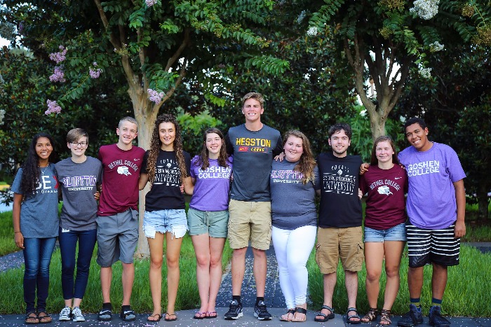 Photo: Students from all five Mennonite colleges and universities sport their college gear during the 2017 Mennonite Church USA convention in Orlando. Photo by Brian Yoder Schlabach.