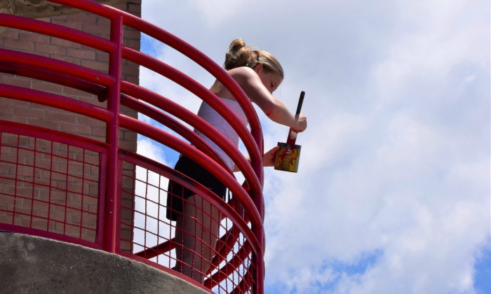 Photo: Inga Haglund of Springs Mennonite Church in Salisbury, Pa touches up the paint at a fire rescue station affiliated with Valencia College in Orlando Florida. Photo provided by Laurie Oswald Robinson.