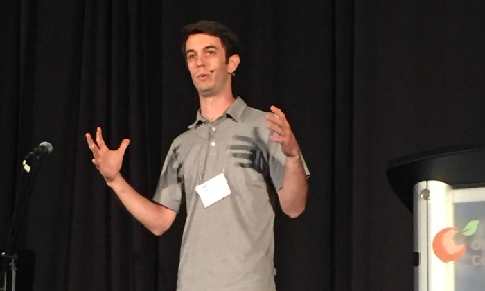 Photo: Nathan Grieser speaks during the Friday MennoTalk session. Photo by Jena O’Brien.