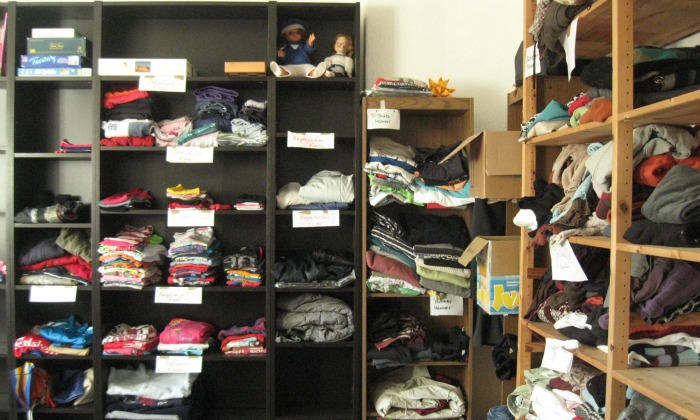 Multiple storage rooms at the church are now filled with clothes, toys, household goods and baby items. The citizens and church members have been sorting the masses of goods. At present, many refugees are living at a local hotel.