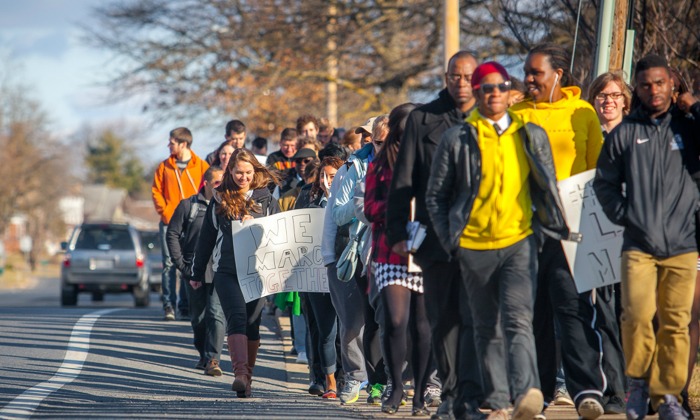 The campus community celebrated Dr. Martin Luther King Jr. Day through various events, including a “One Dream” solidarity march from University Commons to Lehman Auditorium to hear Rev. Dr. Nikitah Okembe-RA Imani. Photo by Michael Sheeler.
