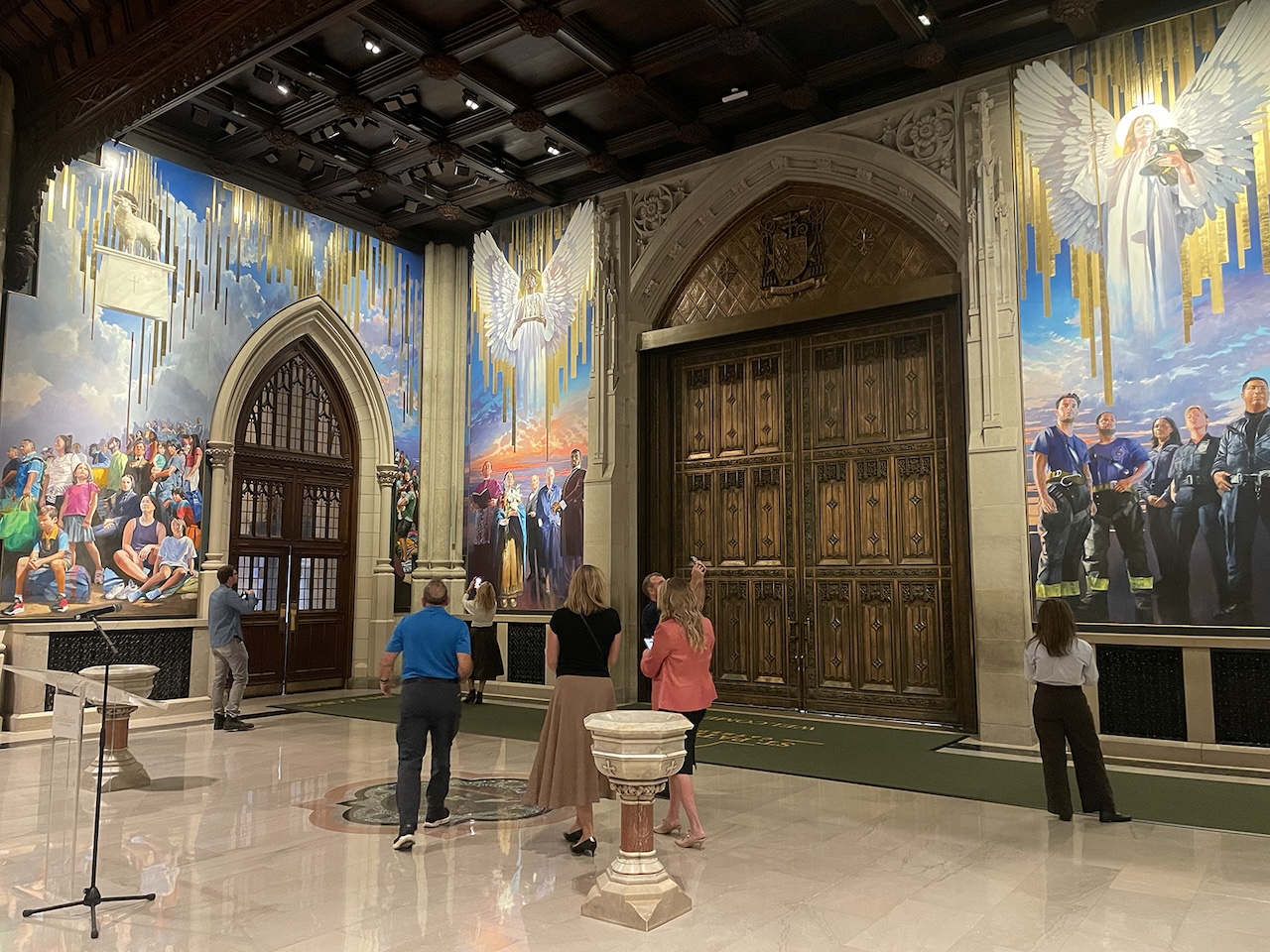 Kevin Conway, vice chairman of a global equity firm and the principal donor behind the mural, said he hopes New Yorkers see themselves reflected in the cathedral’s entrance.
