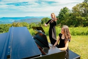 Photo: Pianist Maurita Eberly and violinist Tara Davis accompanied the choir in the video. The use of the Baldwin grand piano was donated by Gary Kerlin, of Gary’s Pianos in Harrisonburg, Virginia. Photo provided.